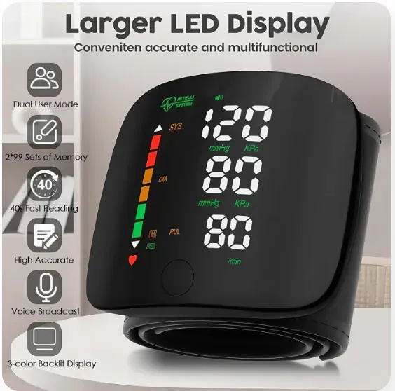 🔥Wrist Blood Pressure Monitor Led Display, Touch Screen Wrist Blood Pressure Cuff 99x2 Reading Memory🔥